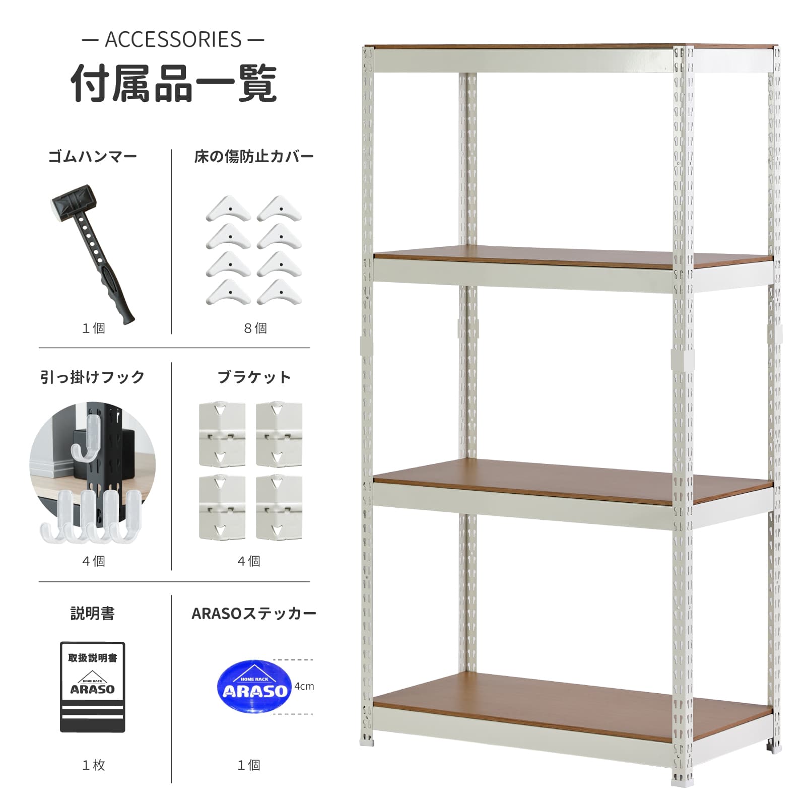 強度と美しさを兼ね備えたARASO(アラソ)のスチールラックは、工具不要のボルトレス構造で女性でも簡単に組立可能です。