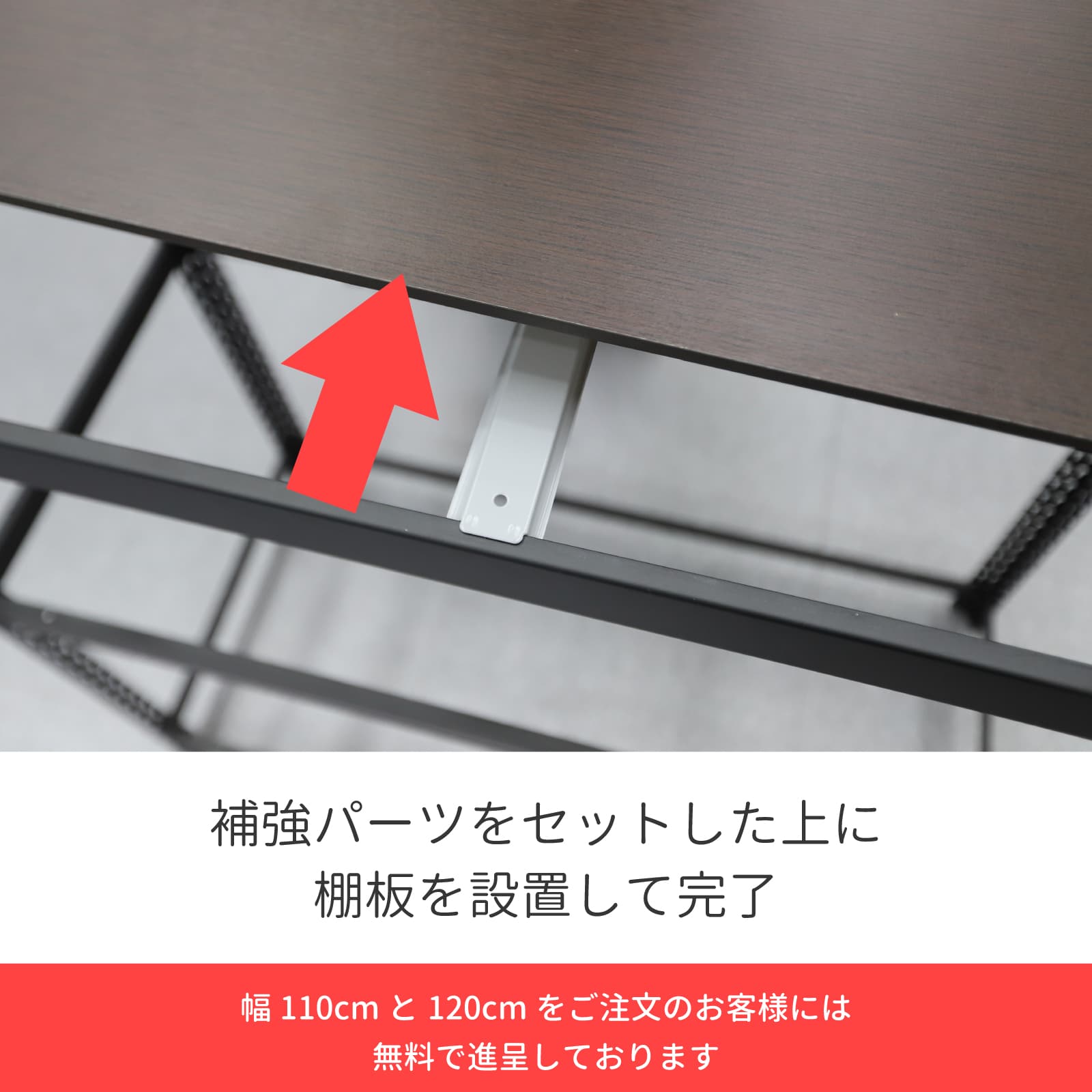 • 棚板の幅110cmと120cmの棚板補強パーツ、ARASOのスチールラック全てに使用できます。