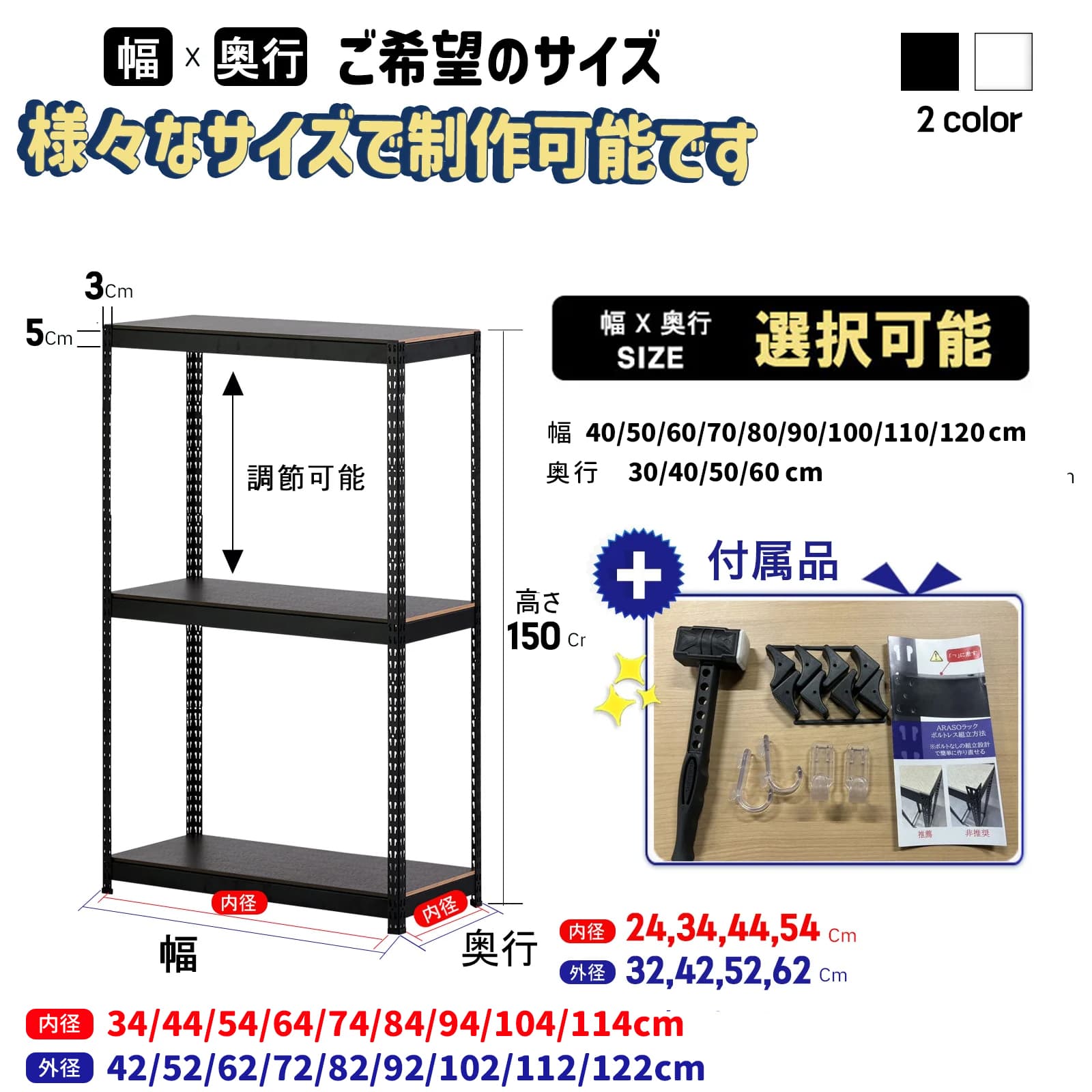 - 当店のスチールラックは本体以外に「傷防止カバー8個」と「引っ掛けフック4個」をワンセット 無料で同梱させていただいております。