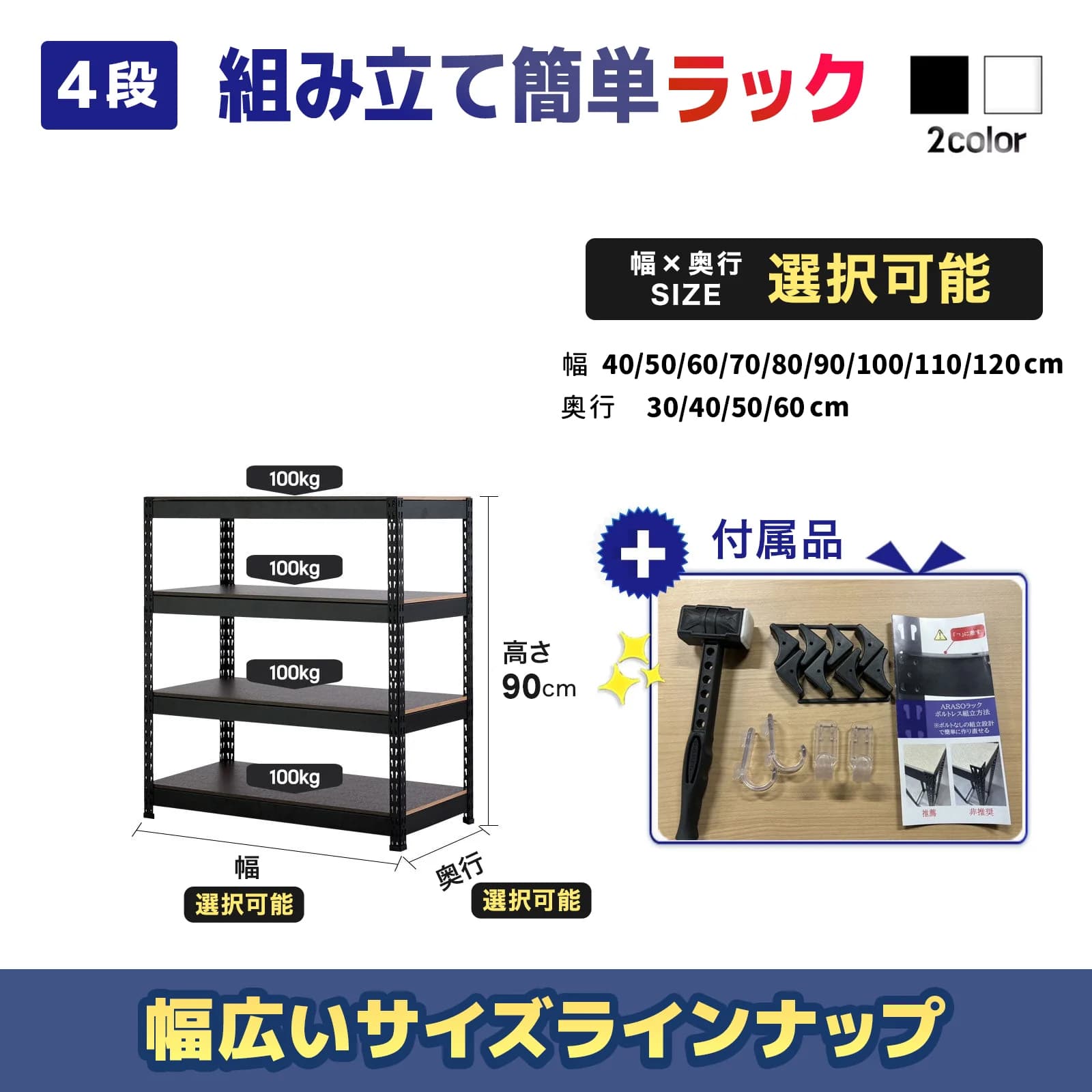 (4段×幅×奥行(選択可能)×高さ90)