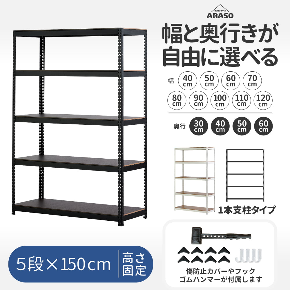 ARASOのラックは1段ごとの耐荷重が高く、棚板がたわんだり、ぐらついたりしにくいため、長期間・高頻度の使用でも安定した収納が可能です。
